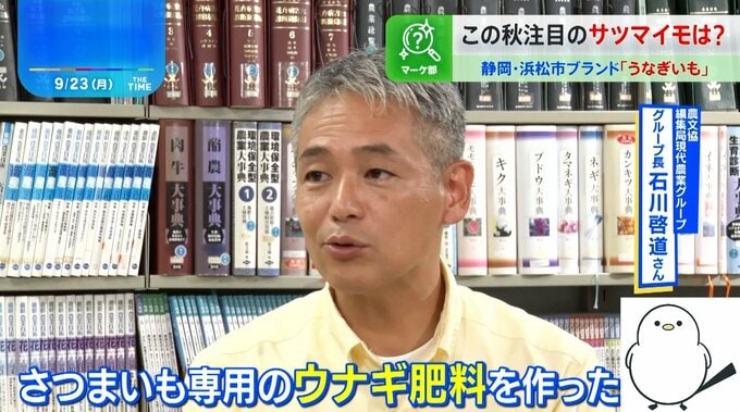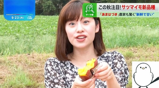 TIME,9月レギュラーの川田裕美さんは、うなぎいもと同じように各地の特産品を使ってブランド芋を作れるのではと話した。「例えば、大間だったら“まぐろいも”とか」