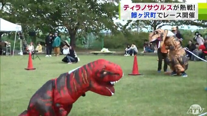 1位から3位になった参加者には町の特産品などが贈られたということです。レースは真剣勝負ですがコミカルな動きを見せるティラノサウルスたちに、会場は笑顔に包まれ、盛り上がりを見せていました。