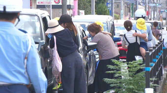 お守りには子どもたちが交通安全を呼びかける絵やメッセージを書き込んでいます。ドライバーは子どもたちからの思いがけないプレゼントを笑顔で受け取っていました。