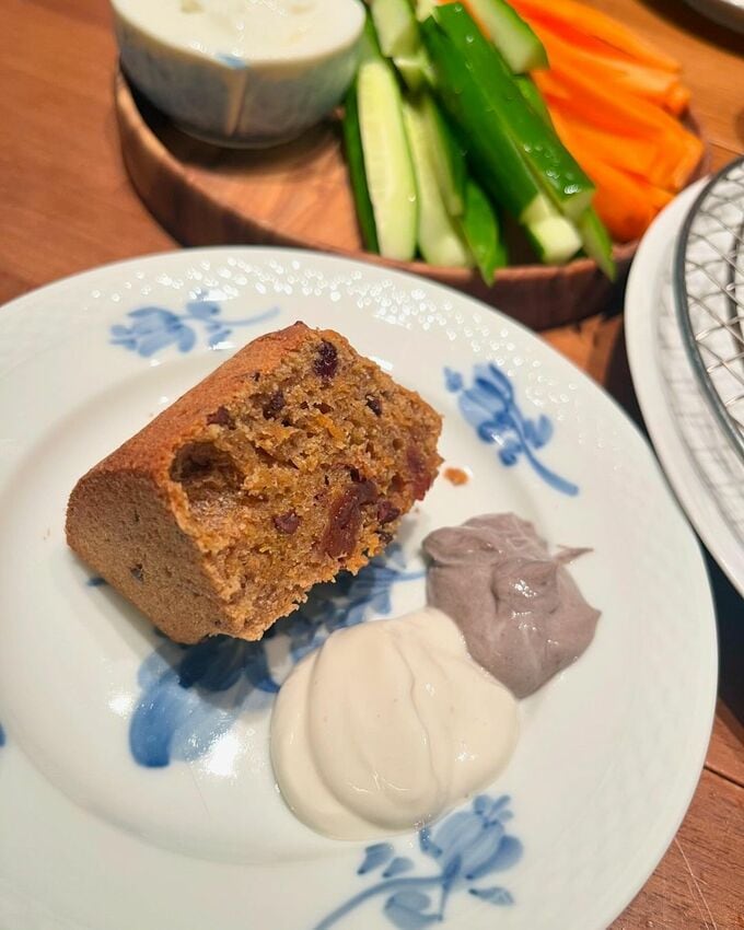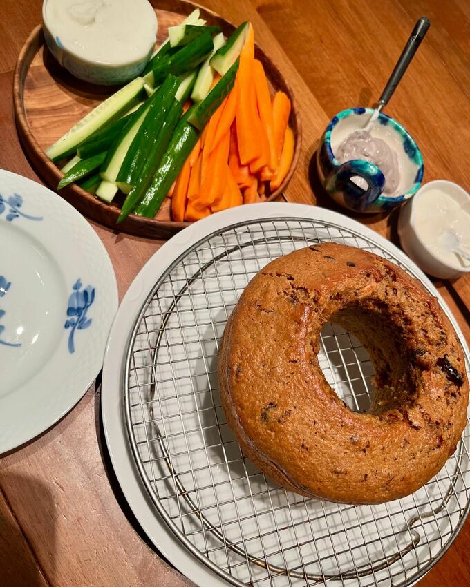 工藤さんは「時間より早く起きてしまったので」「朝食にキャロットケーキ」と書き出しました。時間をとってじっくりと調理に取り組んだのか、テキストでは詳細なレシピを披露。