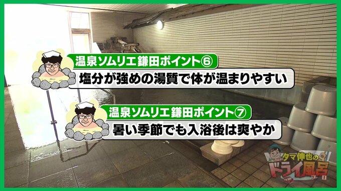 この塩分で体がどんどんポカポカ温まってくるので、短い時間でもすぐ温まる。寒いときは温まるし、夏の暑い時期でもサッパリとして浴後の感じも爽やか」