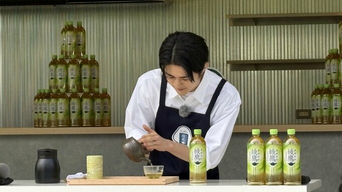 さらにリニューアルした「綾鷹」と「自身が淹れたお茶」の飲み比べを行い“あ〜おいしい。淹れたての1杯目の味がそのまま味わえて驚きです。目がパッて開きました“と感動したようにおいしさを伝えていました。