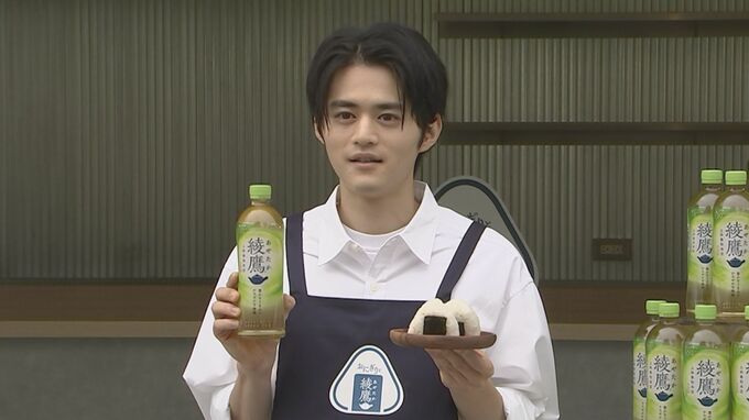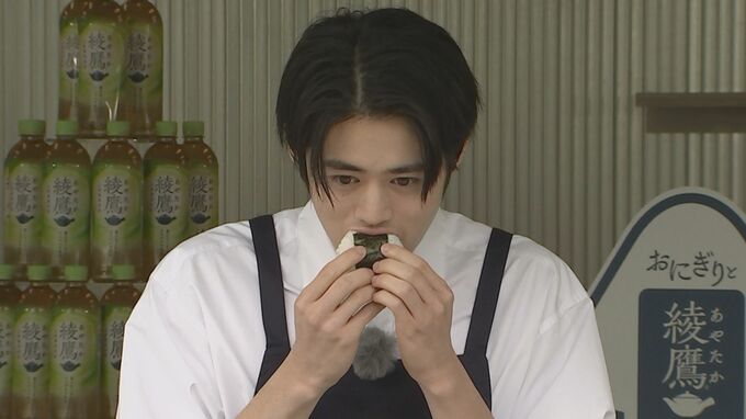 俳優の鈴鹿央士さんが、「おにぎりと綾鷹屋」開店記念PRイベントに出席しました。
