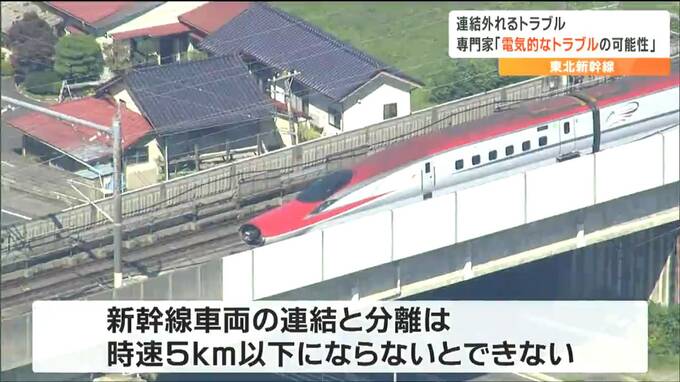 JR東日本によりますと、新幹線車両の連結と分離は、時速5キロ以下にならないとできません。当時、時速315キロで走行していた東北新幹線。JR東日本は人為的なミスではないと話します。