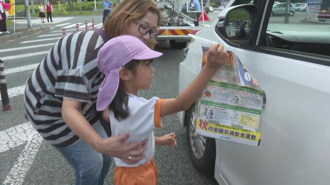 秋の全国交通安全運動の取り組みとして、大分県日出町でサンリオのキャラクター・ハローキティと子どもたちが一緒に交通安全を呼びかけました。