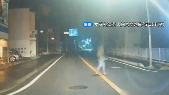 「人間の目で見ると、対向車のライトが眩しくて(横切っていく)歩行者の姿が消えてしまいますね」