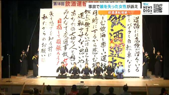 去年、宮城県内では飲酒運転の人身事故が45件発生し4人が死亡しています。大会では、一日警察署長を務めた仙台育英学園高校の書道部員らがパフォーマンスを披露し飲酒運転根絶を呼びかけました。