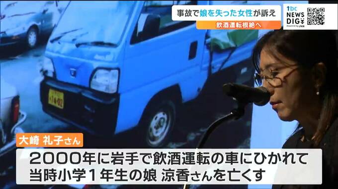 仙台市青葉区で開かれた飲酒運転根絶総決起大会には、交通安全に携わる人などおよそ170人が参加し、飲酒運転の事故で亡くなった人を追悼しました。2000年に、岩手県内で飲酒運転の車にひかれ小学1年生だった娘の涼香さんを亡くした大崎礼子さんが癒えない悲しみを語りました。