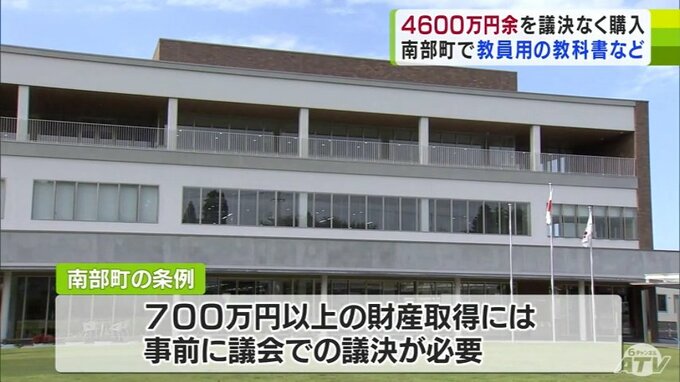 青森県南部町が、事前に必要だった議会の議決を受けずに小中学校の教諭が使う教科書などを購入していたことが24日までに分かりました。議決を受けていないのは3回であわせて4600万円あまりにのぼるということです。