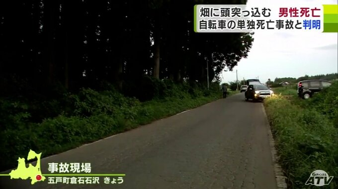 青森県五戸町で、男性が町道沿い法面付近で自転車とともに倒れているのが見つかり、その後死亡が確認されました。