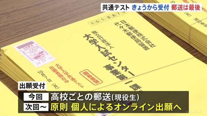 来年1月に実施される大学入学共通テストの出願の受け付けが、きょう始まりました。高校ごとの郵送による従来の受け付けは今年までで、来年からは個人によるオンラインでの出願に移行します。来年1月18日と19日に実…