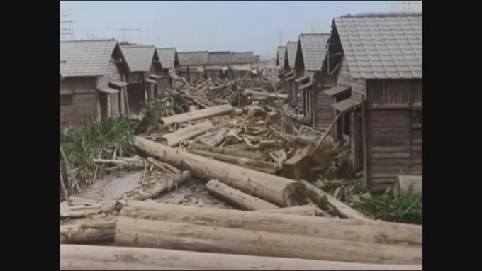伊勢湾台風では名古屋港周辺の貯木場にあった大量の材木が「高潮」で押し流され、町を襲いました。