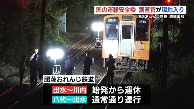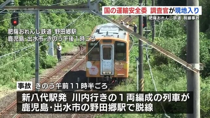 この事故を受け、きのう夜、国の運輸安全委員会の鉄道事故調査官ら4人が出水市に入り、肥薩おれんじ鉄道の関係者から当時の状況を聞き取りした後、野田郷駅で脱線した車両やレールを調査していました。