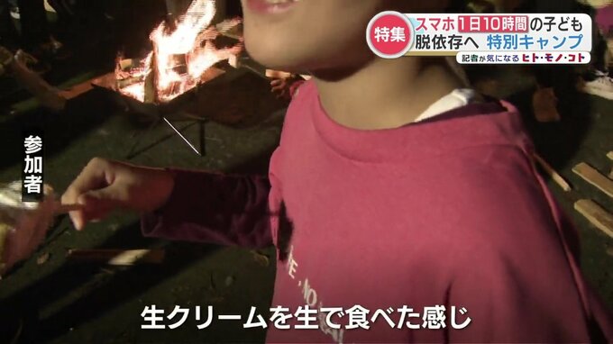 そして夜は焚火。焼いたマシュマロを食べ、取材陣に話しかけてくる参加者もいました。