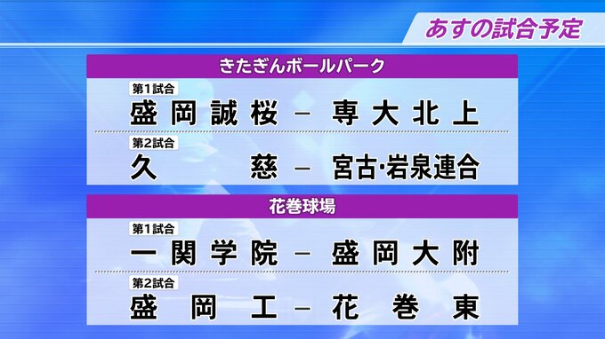 26日は盛岡と花巻の2球場で準々決勝4試合が行われます。