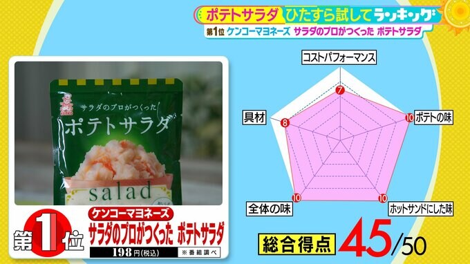 そして第1位は、ケンコーマヨネーズの『サラダのプロがつくった ポテトサラダ』(税込198円 ※番組調べ)。