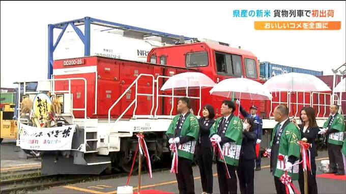 宮城県産の新米が25日、仙台から貨物列車で初出荷されました。仙台貨物ターミナル駅で新米の初荷式があり、JAやJR貨物などの関係者が安全な輸送を祈願しました。そして、ひとめぼれ10.8トンがコンテナに積み込まれ…