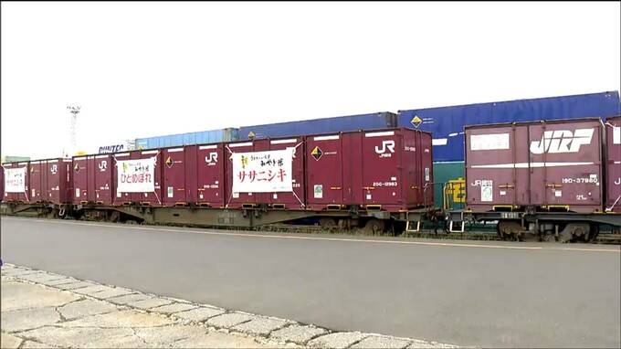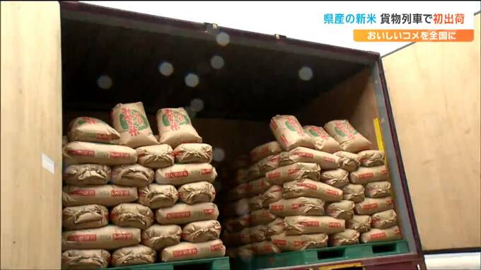 宮城県産の新米が25日、仙台から貨物列車で初出荷されました。