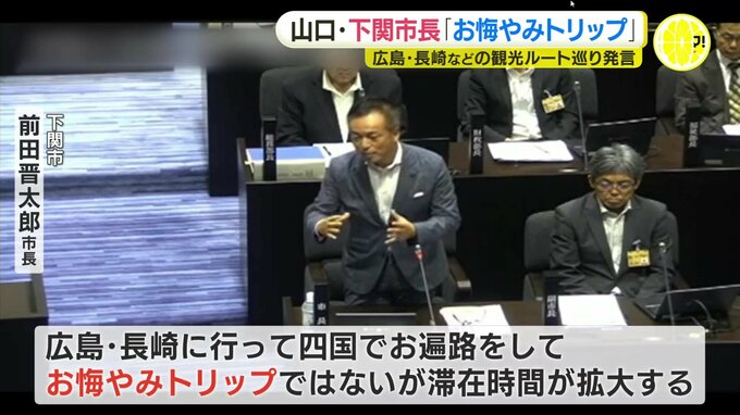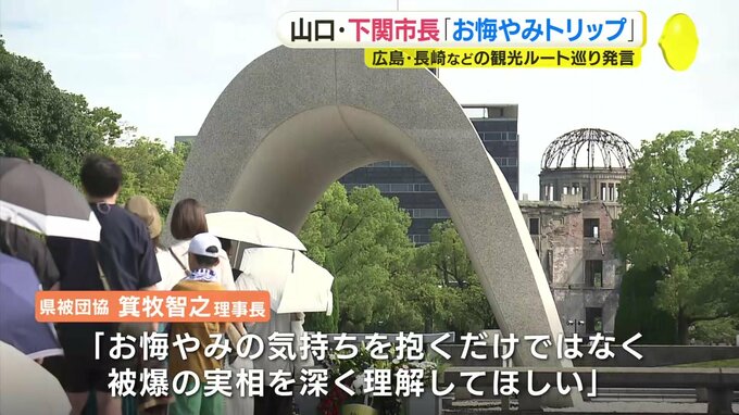 山口県下関市の 前田晋太郎 市長が、市議会で広島や長崎などを周遊する観光ルートについて「お悔やみトリップ」と発言しました。これを受け被爆者団体は「発言は不適切で遺憾」とコメントしています。