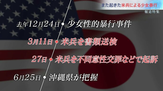 しかし、沖縄県警は身柄拘束を請求せず、米兵から任意で事情を聴き、2か月半後に書類送検。その後、那覇地検が不同意性交などの罪で起訴した。