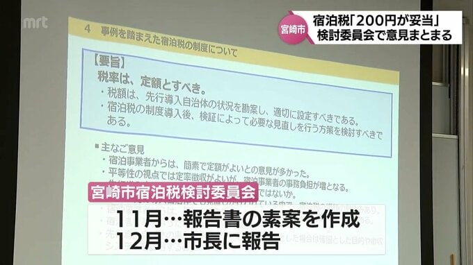宮崎市が導入に向けて検討を進めている宿泊税について、25日の検討委員会で宿泊税は「200円が妥当」とする意見がまとまりました。「宿泊税」は、ホテルや旅館の宿泊料金に上乗せして徴収するもので、宮崎市は宿泊…