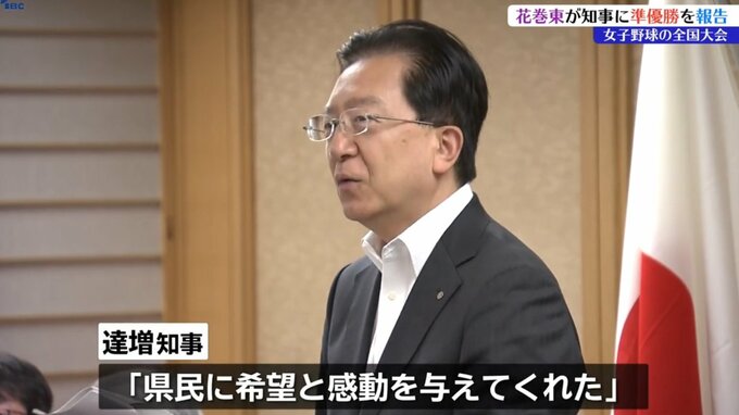 準優勝の報告を受けた達増知事は、「県民に希望と感動を与えてくれた」と活躍をたたえました。