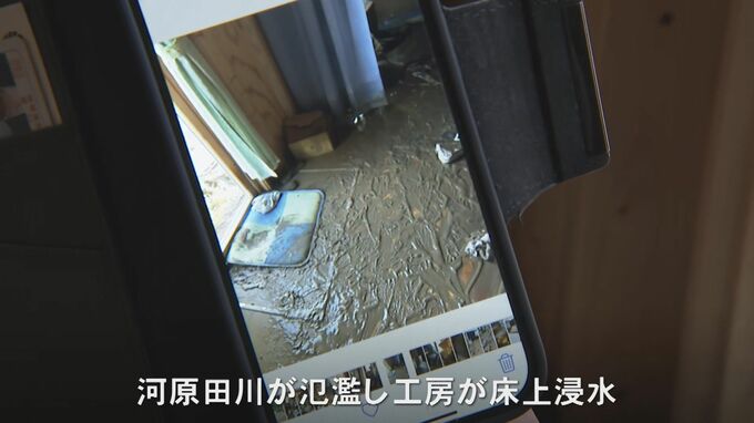 しかし、仮設工房の横を流れる河原田川が氾濫し、工房は床上浸水の被害を受けました。