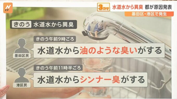世界でも“安全”とされる東京の水道水に何があったのでしょうか。24日、都内で水道水から油やシンナーのような異臭が発生した問題で、東京都が原因を発表しました。