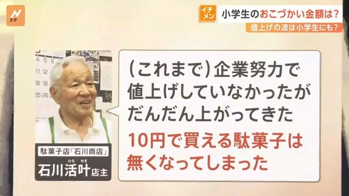 店主の石川さんは「(これまで)企業努力で値上げしていなかったが、だんだん上がってきた。10円で買える駄菓子は無くなってしまった」といいます。