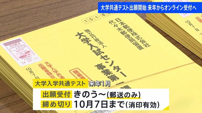 来年1月に実施される大学入学共通テストの出願の受け付けが始まりました。出願は郵送のみで、締め切りは来月7日までです。高校ごとの郵送による従来の受け付けは今回が最後で、次回からは原則、個人によるオンライ…