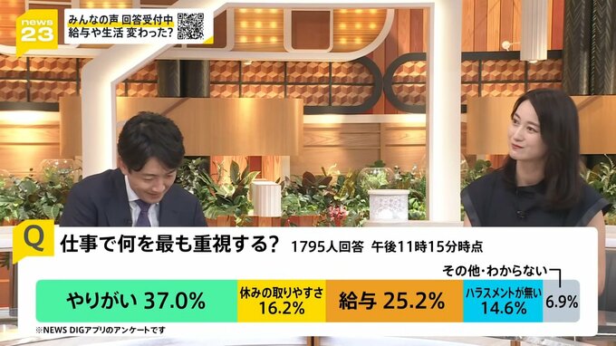 NEWS DIGアプリでは『仕事で重視すること』について「みんなの声」を募集しました。