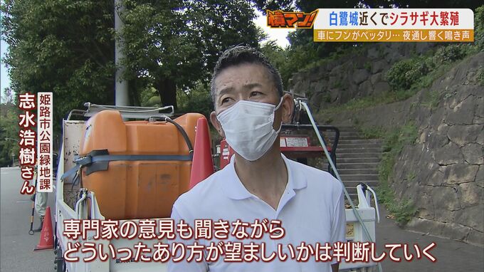 一方の姫路市。シラサギは街のシンボルということもあり駆除には消極的です。市は道路の清掃や、落ちてくるフンへの注意を呼びかける看板を設置するなど、まずは住民の被害の軽減に取り組んでいます。