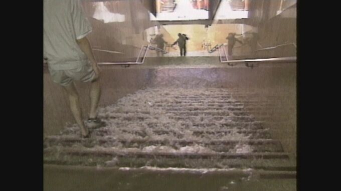「都市型水害」という言葉が世に知られたのは、福岡市の博多駅周辺で1999年に起きた水害でした。福岡市では1時間に79.5ミリの雨が降り、あふれた雨水は、階段から地下街に流れ込み、博多駅周辺や天神地区で、延べ8万9000平方メートルの地下施設が浸水しました。