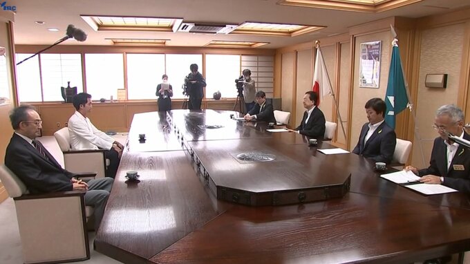 髙橋和生選手は岩手県陸上競技協会の山崎孝一理事長とともに県庁を訪れ、オリンピックを振り返り、達増拓也岩手県知事に報告しました。