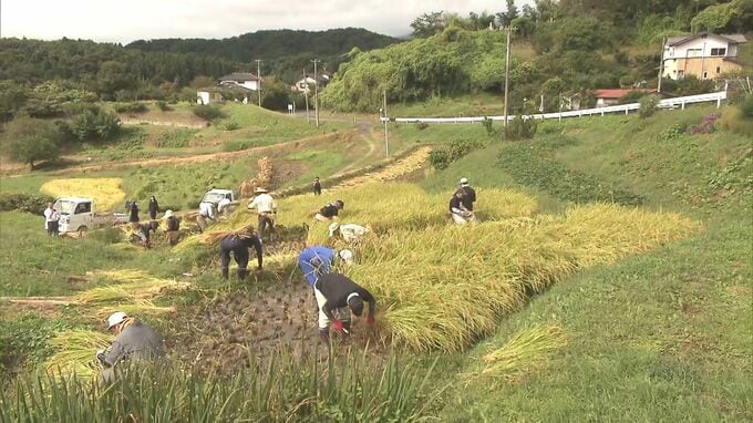 国の「つなぐ棚田遺産」に選ばれている福島県二本松市の西谷(にしたに)棚田で26日、稲刈りが行われました。稲刈りが行われたのは、二本松市の二伊滝(にいたき)地区にある西谷棚田です。西谷棚田は2022年、国の…