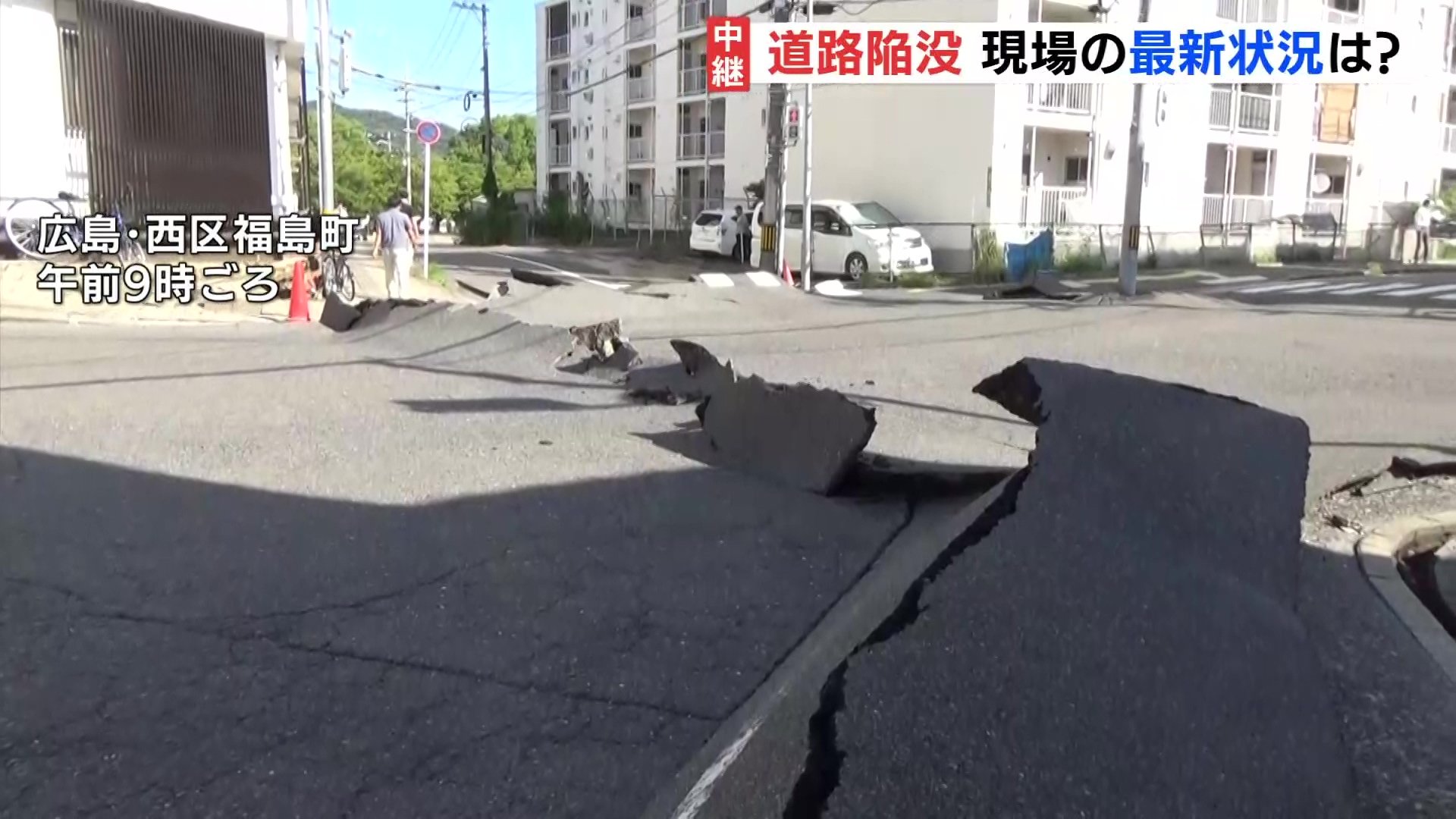 道路の陥没が発生した広島市西区の現場からリポートです。