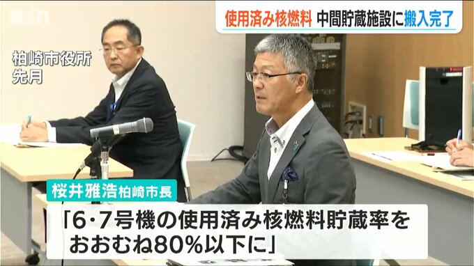 柏崎市の桜井雅浩 市長は再稼働を認める条件の一つとして、6・7号機の使用済み核燃料の貯蔵率をおおむね80パーセント以下にすることを求めています。