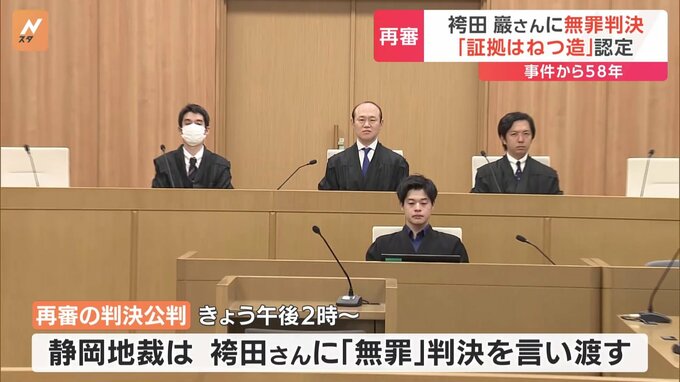事件から58年。袴田巖さん、やり直しの裁判で無罪判決です。午後2時から始まった袴田事件の再審判決公判は、まだ続いていますが、静岡地裁前では無罪の判決の一報が届いた瞬間、大きな歓声が沸きました。記者「無…