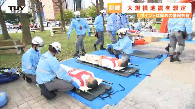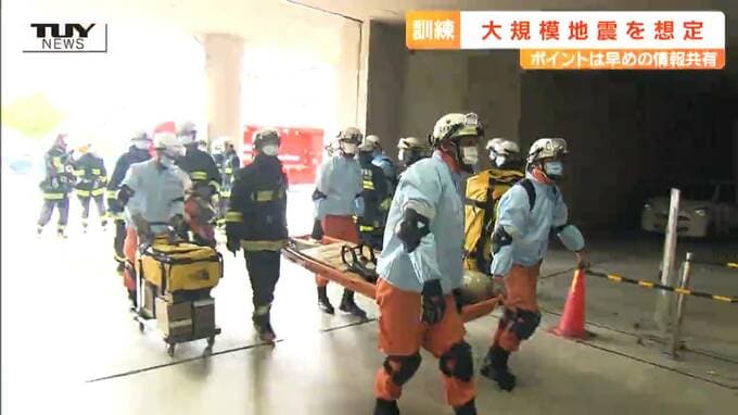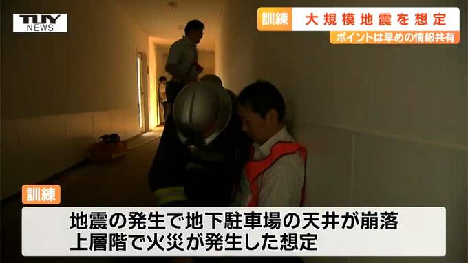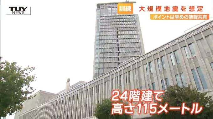 山形市内で最も高いビルで、きょう、大規模地震を想定した防災訓練が行われました。