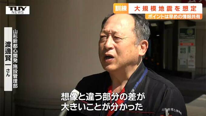 山形新都心開発・施設管理部 渡邊賢一さん「想像と違う部分の差が大きいことが分かった。ここで働く人たちの知識・糧となってもし万が一災害が発生した場合には、その人たちの力が必要になってくるので、こういう訓練は大事にしていきたい」