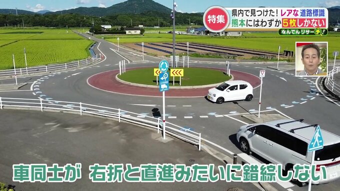 この交差点は2018年に熊本に初登場した「環状交差点」(別名・ラウンドアバウト)で、レア標識はこの交差点を示す道路標識でした。