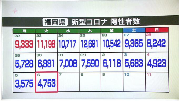 新型コロナに関する速報です。福岡県は6日、新たに4753人の陽性を確認したと発表しました。5日時点で、病床使用率は前の日から2.9ポイント下がって60.0%、重症病床の使用率は1.8ポイント上が…