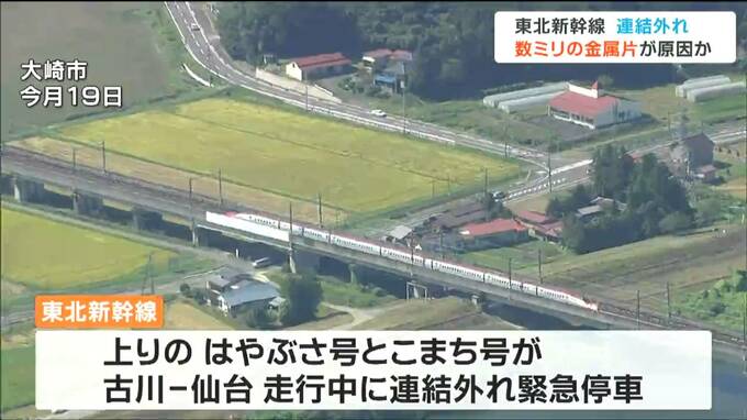 9月19日、宮城県内を走行中の東北新幹線で、車両の連結が外れたトラブルについてです。JR東日本は、その後の検査で、連結を強制的に解除する装置付近から複数個見つかった数ミリの金属片がトラブルの原因とみられると発表しました。