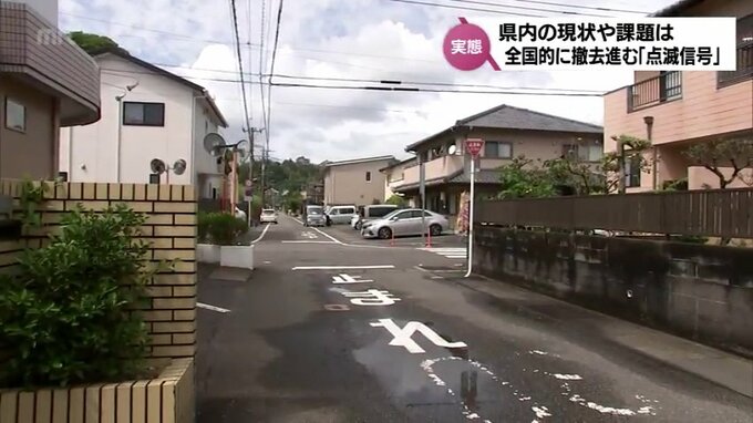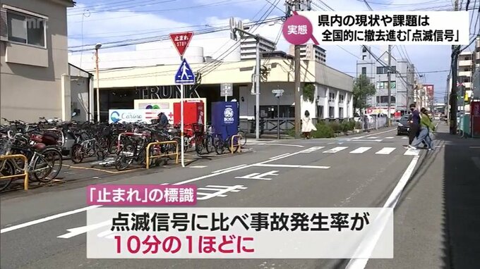 宮崎市大塚町の交差点では、今年3月に点滅信号が撤去され、現在は、「止まれ」の標識で一時停止規制をしている。