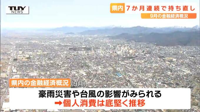 日銀山形事務所によりますと、県内の9月の金融経済概況は物価高を受けた節約志向や、一部自動車メーカーの生産・出荷停止に伴う弱さのほか、豪雨災害や台風の影響がみられるものの、個人消費は底堅く推移し、景気全体の基調判断については