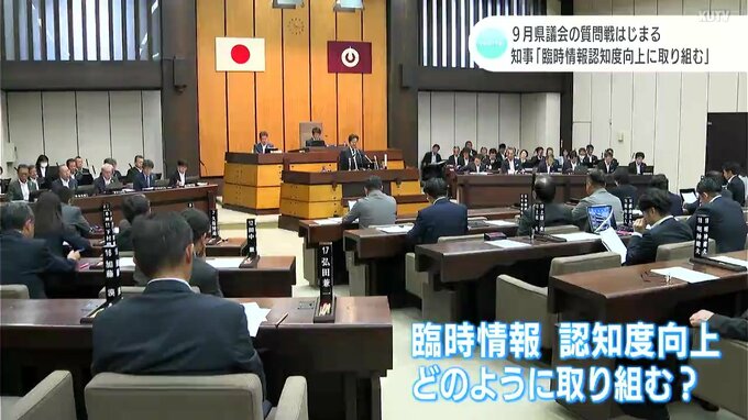 高知県議会9月定例会で質問戦が始まり、濵田知事は南海トラフ地震臨時情報の認知度向上に取り組んでいく方針を示しました。高知県内では8月8日南海トラフ地震臨時情報が初めて発表され、よさこい祭り出場を辞退す…
