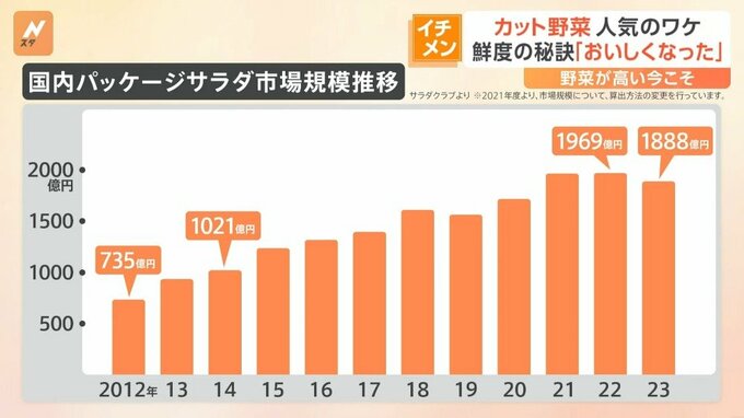 野菜の高騰が続く中、価格が安定しているカット野菜が人気のようです。気になる鮮度や、栄養、そして、おいしさの秘密、取材してきました。