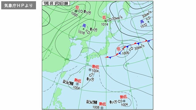 気象庁の最新情報によりますと「台風16号(シマロン)」は、26日午後3時現在、「日本の南」で「熱帯低気圧」に変わり、南西方向にゆっくりとした速さで進んでいるとしています。中心の気圧は1004ヘクトパスカルです。しかし…。