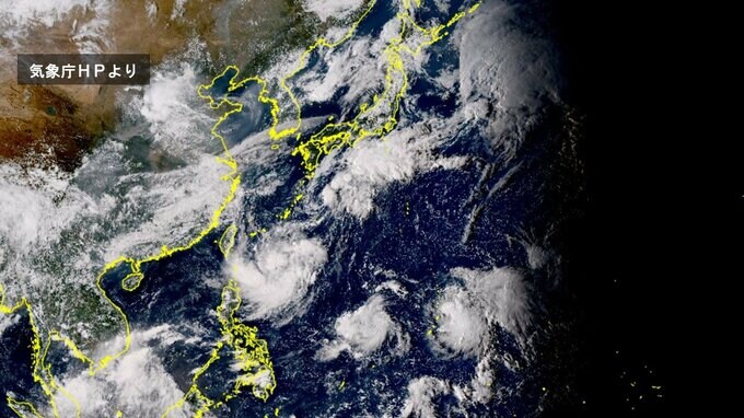 衛星画像を確認すると日本の南側には、ぽつぽつと雲の塊ができており、天気図では複数の熱帯低気圧が確認できます。