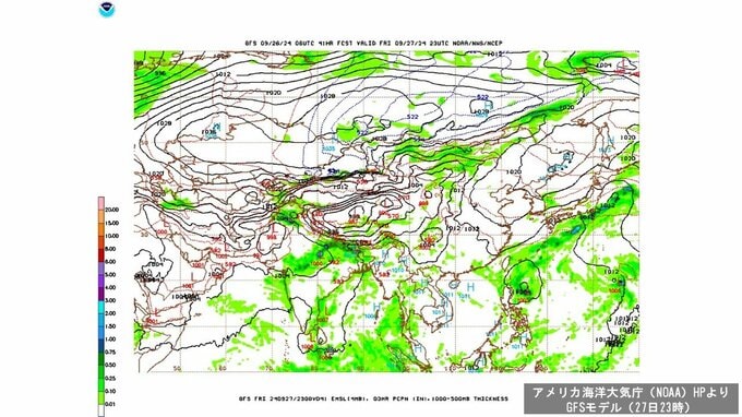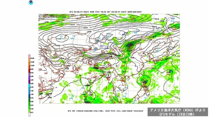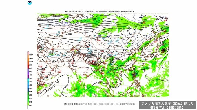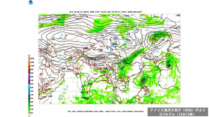 アメリカ海洋大気庁(NOAA)発表の「GFSモデル」を見ると…